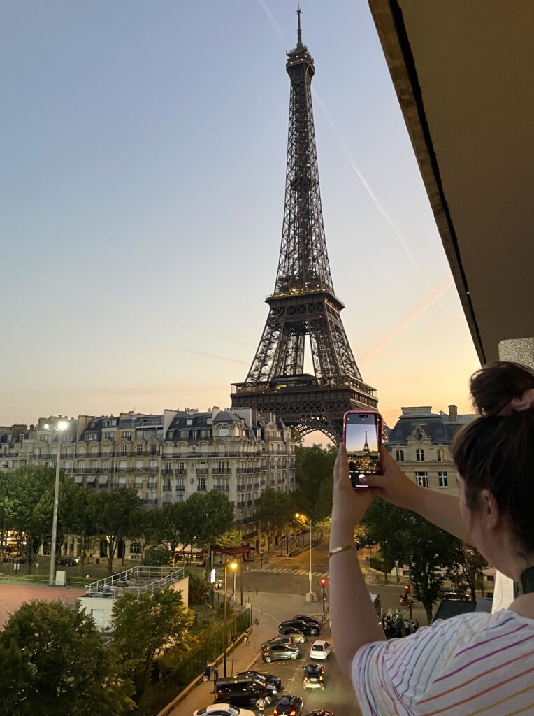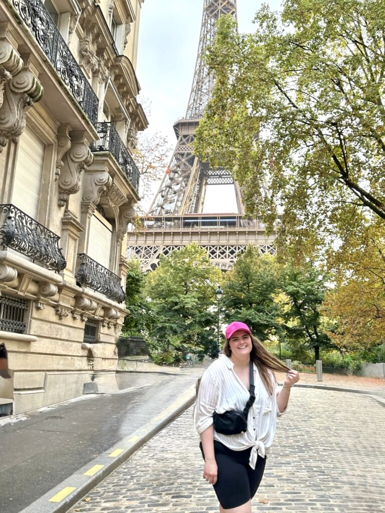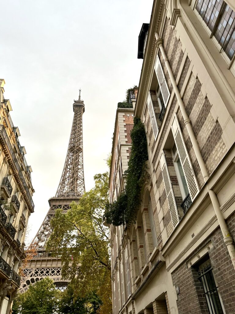Once again, as a basic white girl, aesthetic travel photos in aesthetic travel locations are always a slay. All over social media I saw girls on Rue de l’Université, taking easy, breezy, cool, aesthetic “I’m-in-Paris-on-this-nonchalant-side-street-with-the-Eiffel-tower-casually-in-the-background” pictures. So, when we accidentally stumbled upon that exact location while on a pre-dinner, “last-night-in-Paris souvenir hunt” walk, I was delighted! I truly hadn’t done any research into where this photo-op street was, and I had no idea it was a few blocks from The Pullman Paris Hotel where we stayed! I know taking photos that include the Eiffel tower, even just casually, doesn’t really scream “local”, but being on this side street surrounded by exquisite Haussmannian apartments tucked away from the hustle, bustle and busyness of other picturesque Eiffel tower photo spots, felt local. What a delight to be strolling around the 6th arrondissement at golden hour and see the Iron Lady emerge against the historic facade that is Paris.