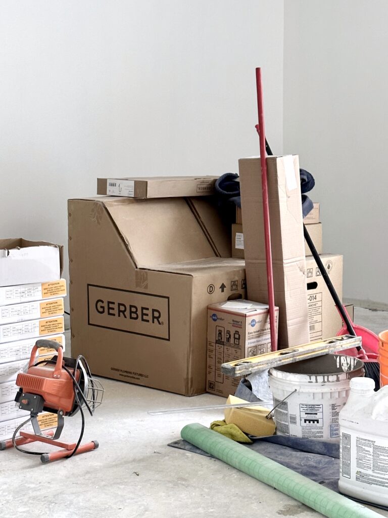Open all the packages and boxes that get delivered WHEN they arrive! This is everything, hard finishes, appliances, soft furnishings… things can arrive broken or damaged, they might be the wrong colour, or the completely wrong item!! We’ve had tiles and mirrors arrive broken, appliances delivered in the wrong colour, and items missing parts. And if you can have the correct trade open items with you, they often can tell right away if something is amiss. We ordered the cutest faucet for Claudia’s bathroom, and when we opened it with our plumber he right away said it was missing some very important do-hickey! Something like that, we wouldn’t have known or spotted on our own. You also don’t want to miss the return/replacement window depending on the suppliers’ terms. If you don’t open your flooring for 6 weeks, and when you do it’s wrong, it will probably be very hard to get a replacement or refund.