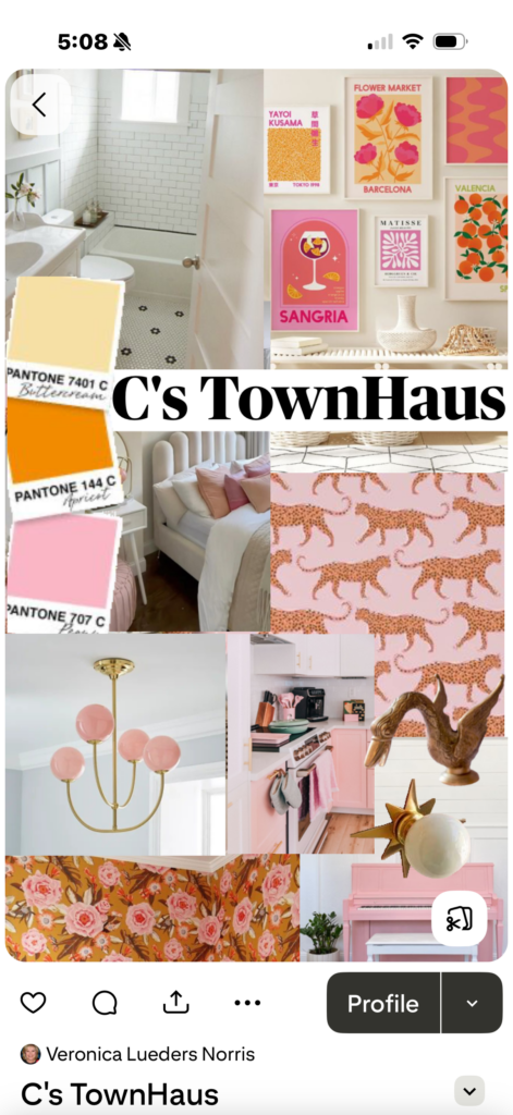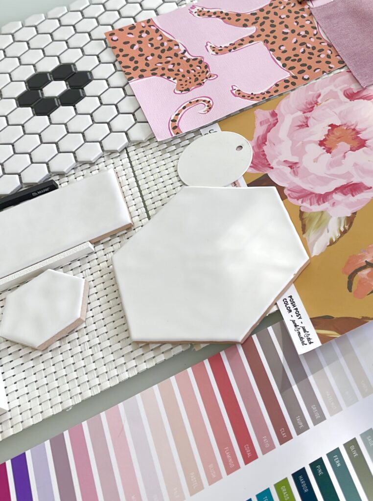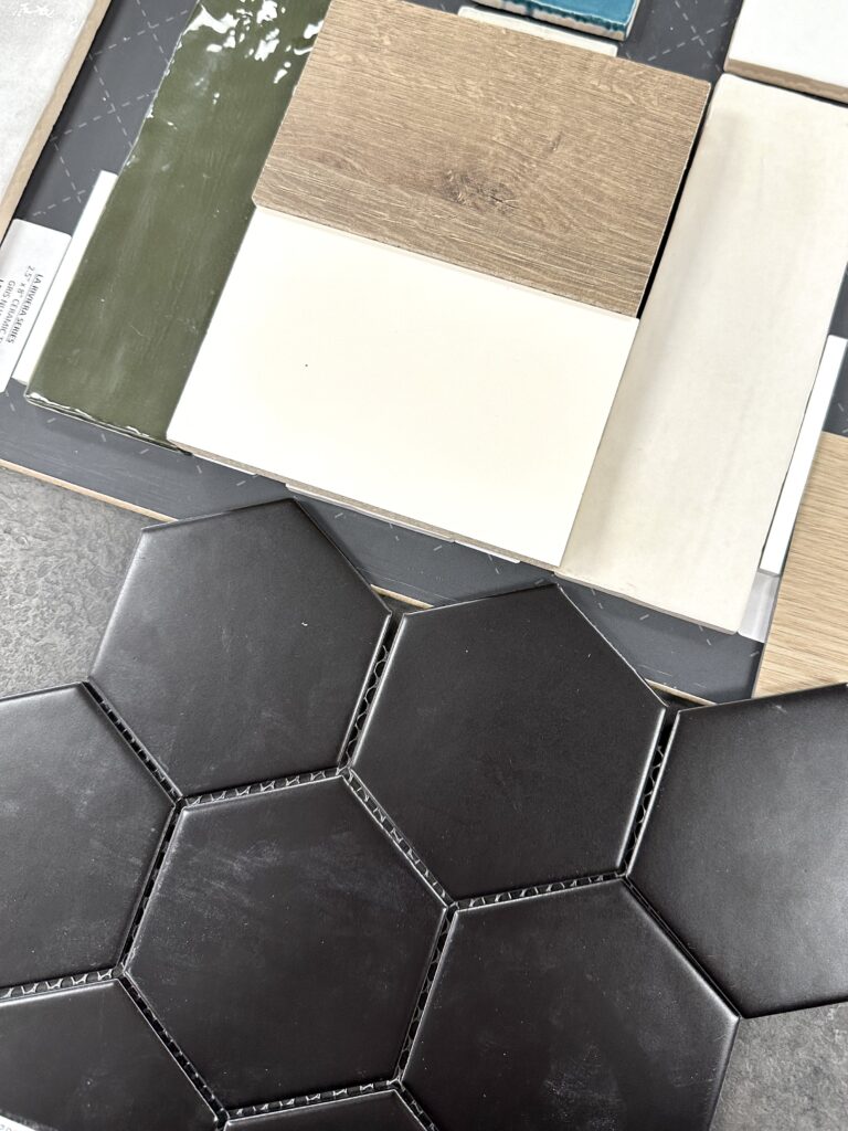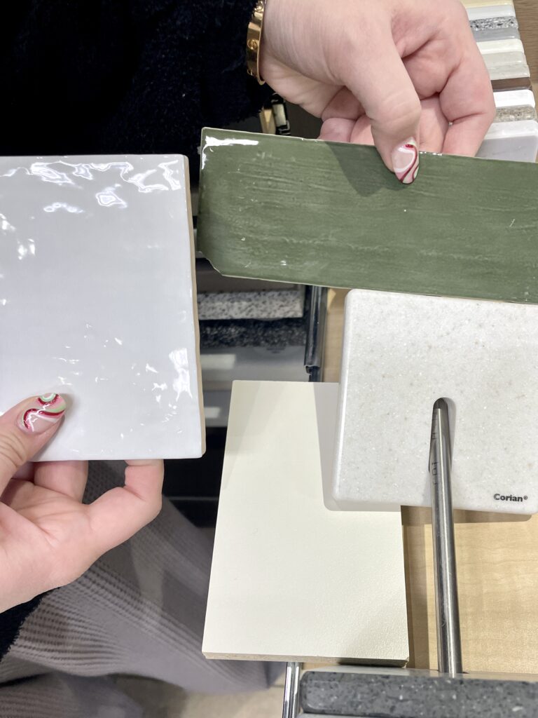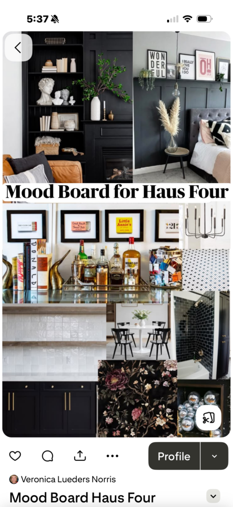 Our Pinterest boards are clearly named and organized for quick and easy access to find pins to reference. Having your mood board and inspo pins solidified before you go shop is also super important. We always know, or at least have a very good idea of what we’re looking for when we walk into a showroom. If you walk into a tile store and say “you’re looking for something for your bathroom…” that is really not going to help you or the sales person with where to start, but if you say “I’m looking for a dark green subway tile for my shower” they will whip out those samples for you in a jiffy!! We often show sales associates our mood board and/or Pinterest boards so they understand and get our vibe for the project… a picture is absolutely worth a thousand words!