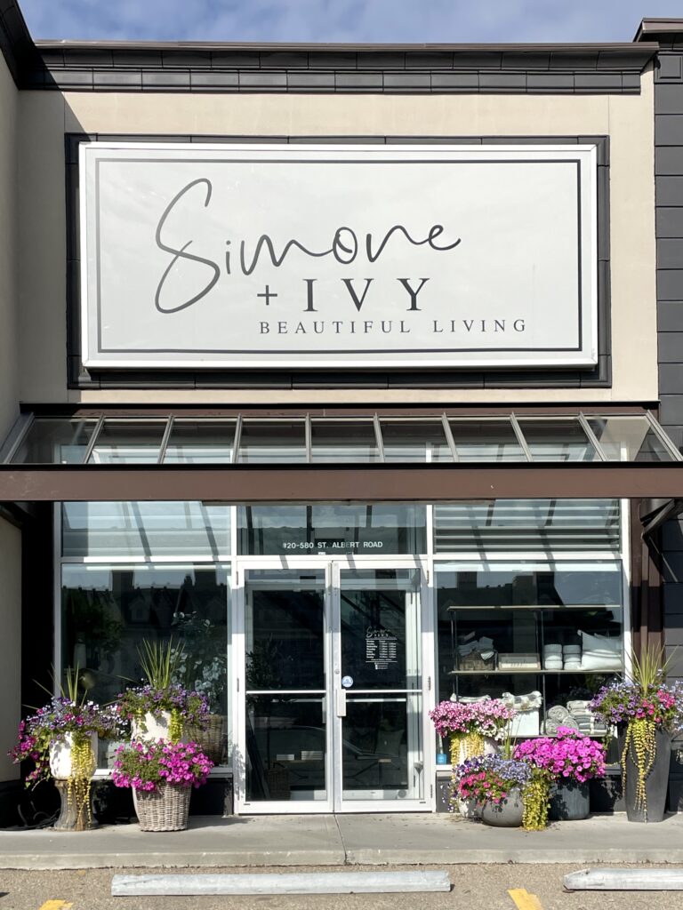 I might be a bit biased because I was a sales associate at Simone & Ivy a few years ago, but their store is truly what decor dreams are made of!! Leanne & Heather (love y’all!!) have built a gorgeous and thriving women-founded, owned and operated business, which is amazing. As girls’ girls, shopping at Simone & Ivy is really a no brainer for us. They carry a variety of thoughtfully curated Canadian brands offering Canadian-made furniture (yay, eh?!), and the showroom is always beautiful and homey, especially around the Christmas season! They have gorge small home decor accessories and all their Faux Greenery options look very realistic and “non-faux” (see my olive branches below)! Claudia bought the Barrow Dining Chair in ‘White Mist’ for her kitchen chairs, they were a bit of a splurge for her, but they have worn amazingly, (they still look brand new!!) and are the perfect texture and colour. Plus they always get compliments about how comfy they are, and they’re on wheels… who doesn’t love a rolly chair?! Simone & Ivy ships Canada wide, so definitely give their website a browse if you can’t make it into their dreamy showroom!