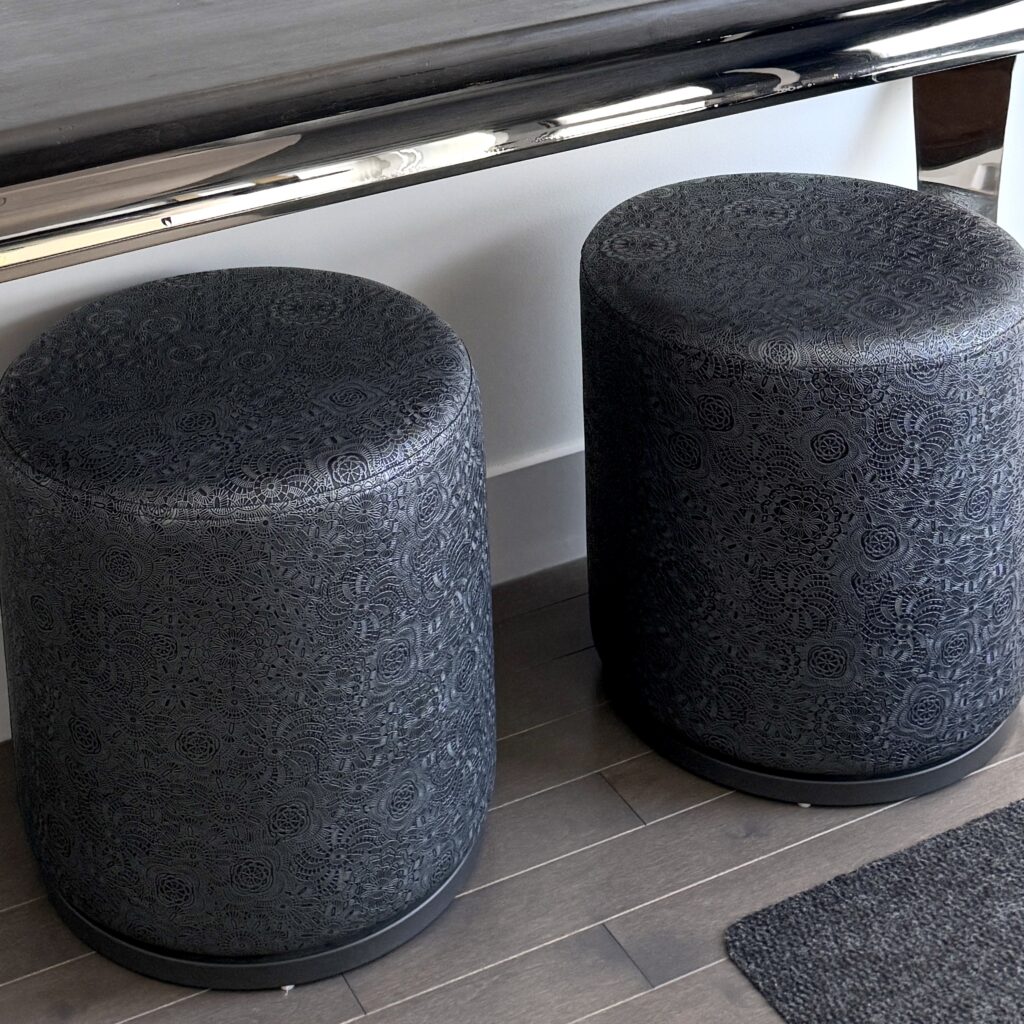Locally owned in west Edmonton we love Signature Lane for their vast selection of different brands, items, and customization options! We’ve ordered custom barstools and tables for both of our homes from the brand TRICA. Trica’s furniture quality has been truly fantastic, holding up to daily use in my kitchen and scrap room since 2017, and since 2024 in Claudia’s office. The barstools we both have are the DAY, and I have 2 custom Marshmallow stools. We also love that you can buy directly off their sales floor, meaning you can walk out with your new purchase that day if it’s what you’re looking for. And their showroom is always changing, so there is always a new piece to lust over every time we go in! Brianne has been our go-to gal when we shop, but all the staff is wonderful and with Hallo Haus Studio being a family run biz, we LOVE supporting a fellow family run biz!!